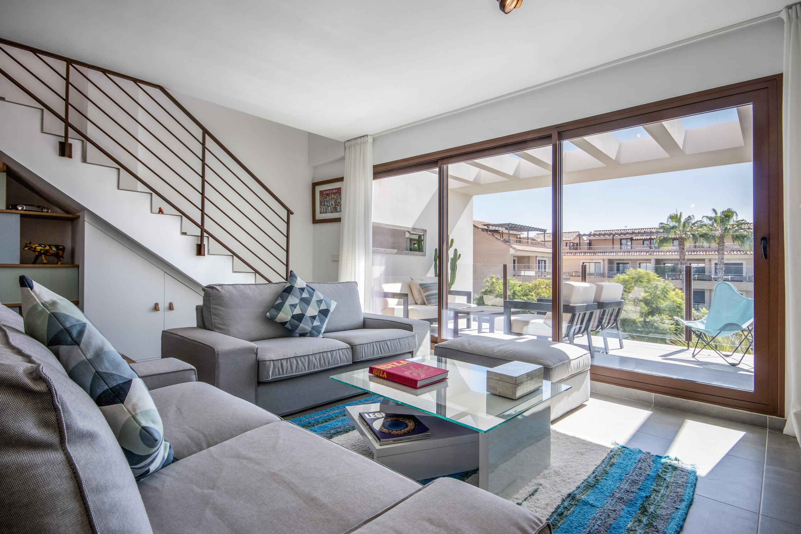 We had the penthouse modern stylish and well equipped we enjoyed the local supermarket most days light cooking at home ...10 min walk ...nearest beach bar was 10mins walk and we were ideally situated between the port and the arenal..for us we enjoyed the walk each day for 1 of our meals out ......may was unusually hot and the private terraces were very welcome ...recommend this apartment it's got style and personality home from home |