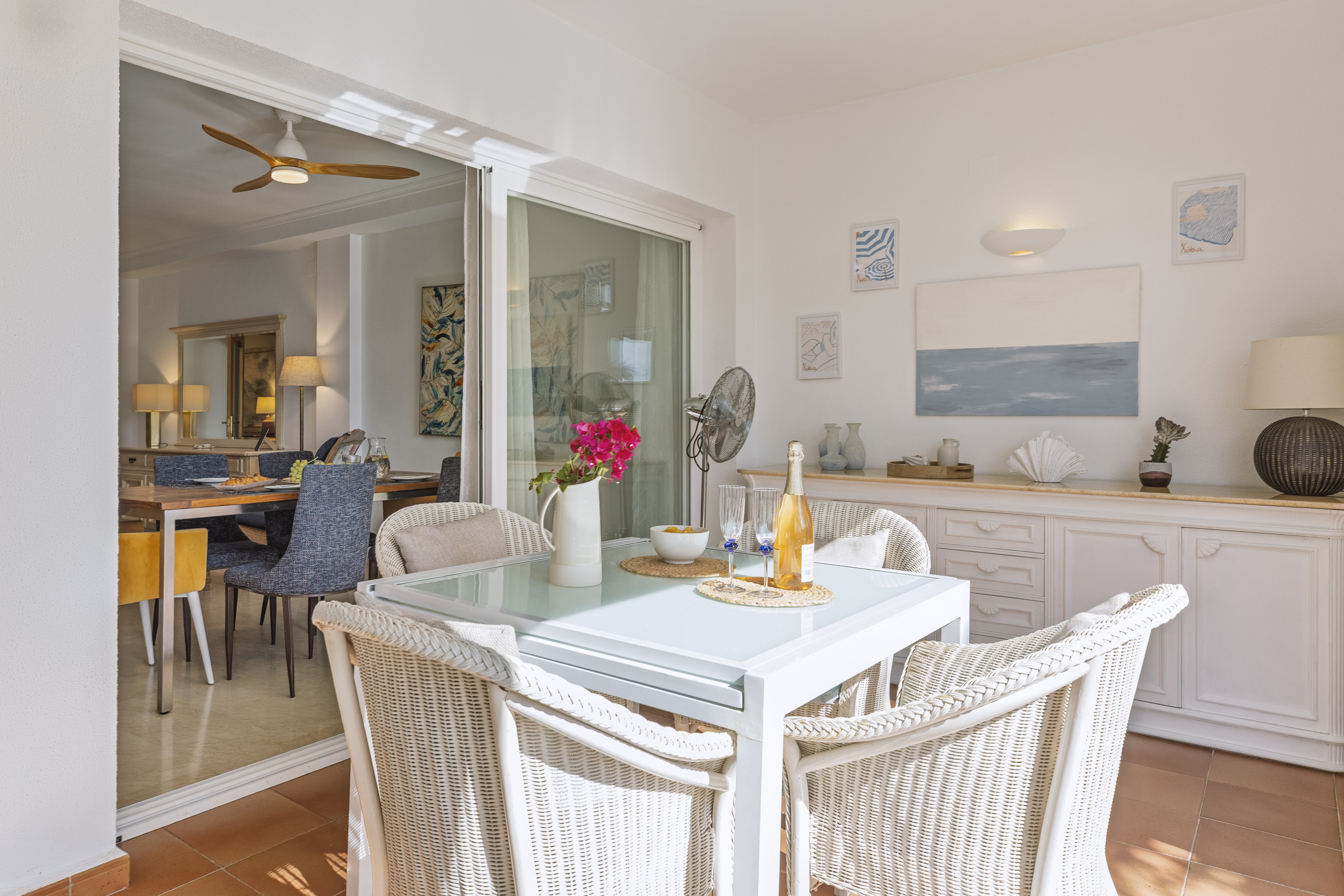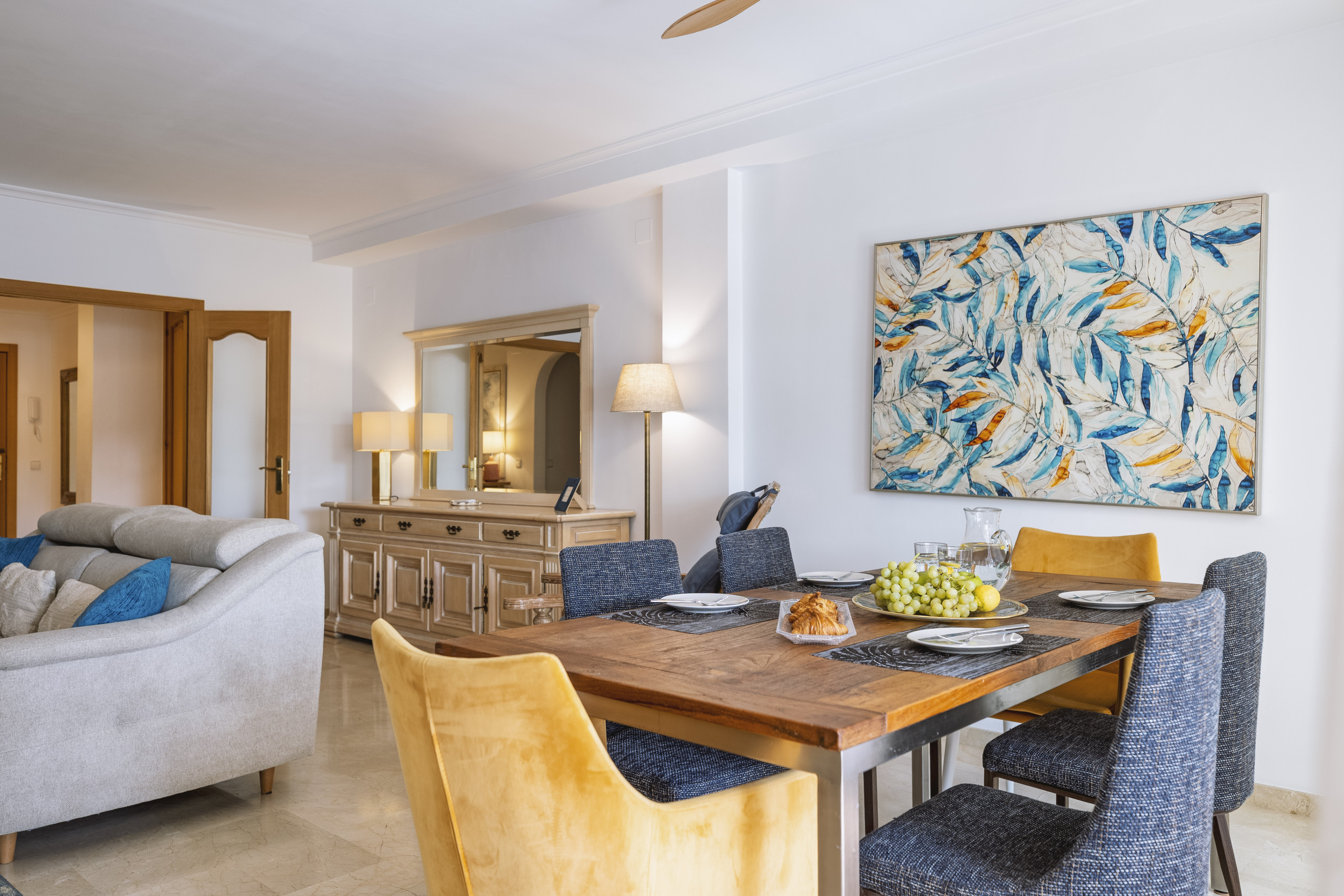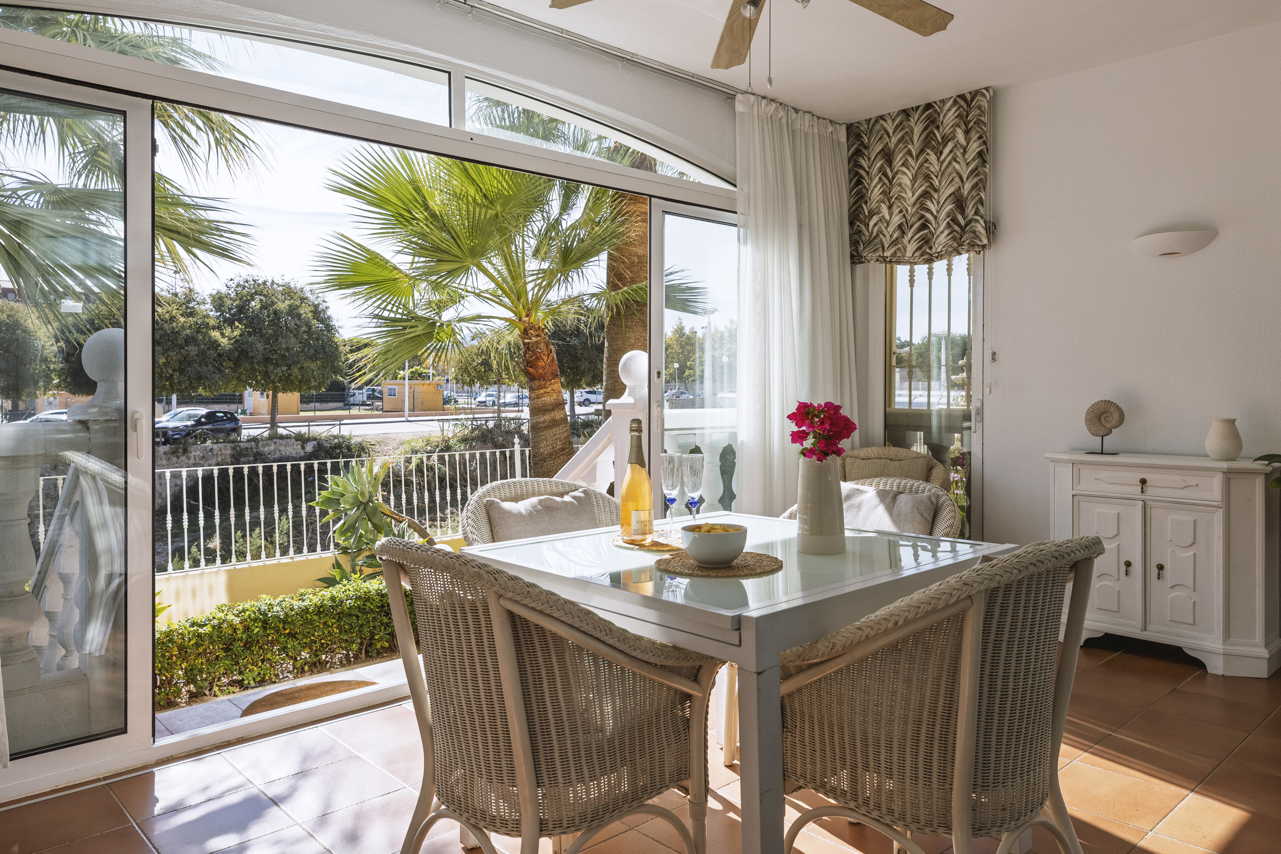 Entdecken Sie Boutique Bolonia, eine helle und stilvolle Erdgeschosswohnung im ruhigen Komplex Villas de Bolonia. Umgeben von üppigen Gärten und einem funkelnden Gemeinschaftspool (plus Kinderpool) ist es der perfekte Ort für Familienausflüge oder einen beschaulichen Rückzug.