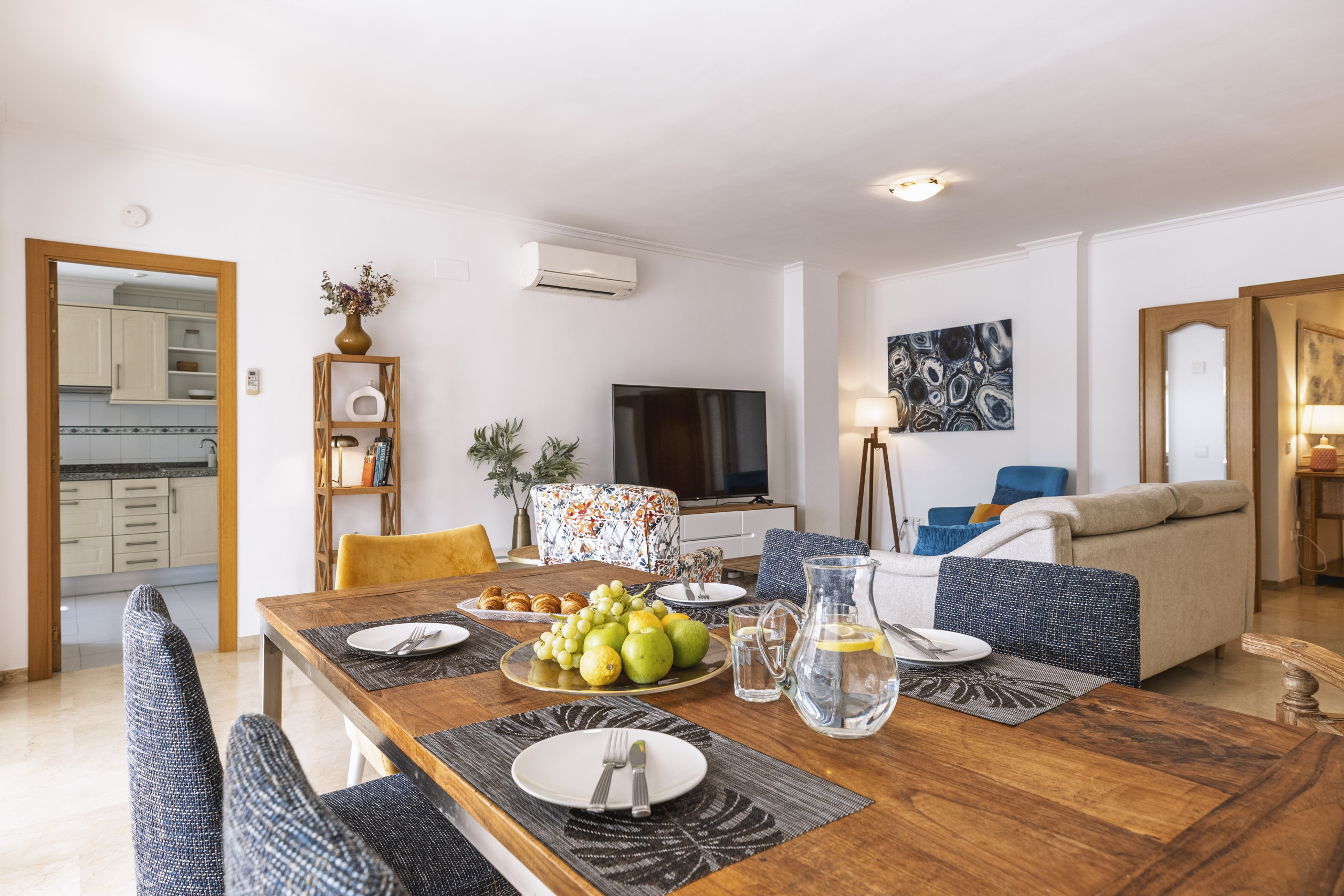 We spent a fantastic week at Jardines del Sol apartment in Javea. The apartment is large, with generous living spaces and bedrooms, tastefully decorated throughout with modern comfortable furniture and art work. Everything works brilliantly in the apartment the air con is super effective, the showers are great, beds comfortable and the kitchen is really well equipped. The TV and sound system are also very high quality and very importantly, the wifi signal is perfect! We really enjoyed the pool area which is spotlessly clean and calm. The apartment has 2 sun loungers available so you can spend lazy afternoons there quite comfortably. The location of the apartment is ideal. There are so many bars and restaurants to choose from within a 10 minute walk in the buzzy atmosphere of the port area. We particularly liked Tal Cual for tapas and The Curry Palace for an unexpected but excellent curry - (they have air con inside so its really comfortable). There are plenty of supermarkets close by, we used the Mercadona most frequently which is great value and superb quality food.