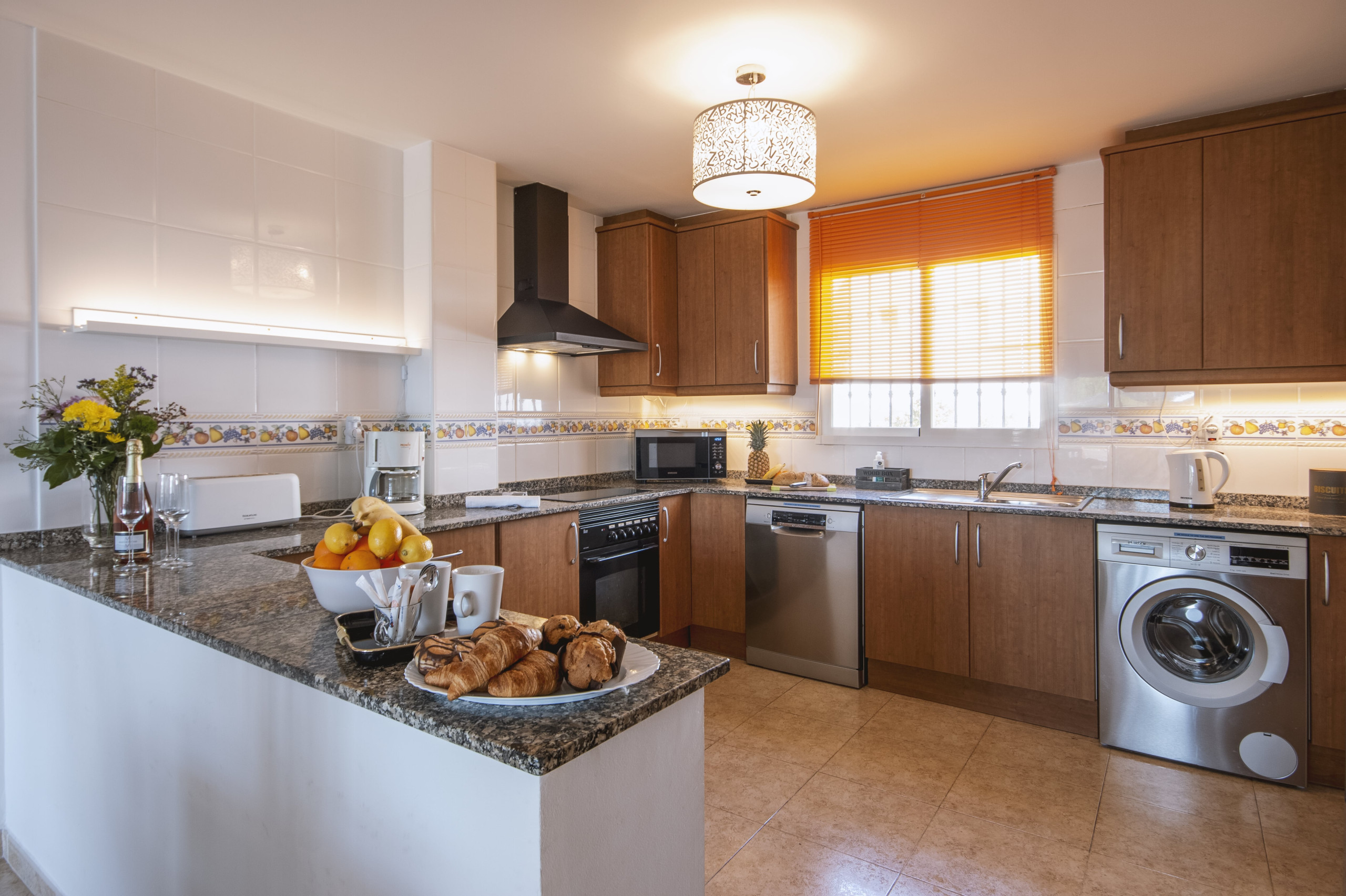 In het interieur van het appartement worden gasten ontvangen met lichte gekalkte muren, zonnige kunstwerken en mooie decoratieve accenten in rotan en strand tinten. De ruime woon-eetkamer en keuken kijken uit op een groot overdekt balkon, met een buiteneettafel en comfortabele zitplaatsen. De elegante slaapkamers beschikken over ingebouwde kasten en kwaliteitsbedden met gewatteerde hoofdeinden. De airconditioning voor koude/warme lucht is verdeeld over de hele eigendom via een kanaalsysteem, waardoor het een comfortabele plek is om het hele jaar door te verblijven.