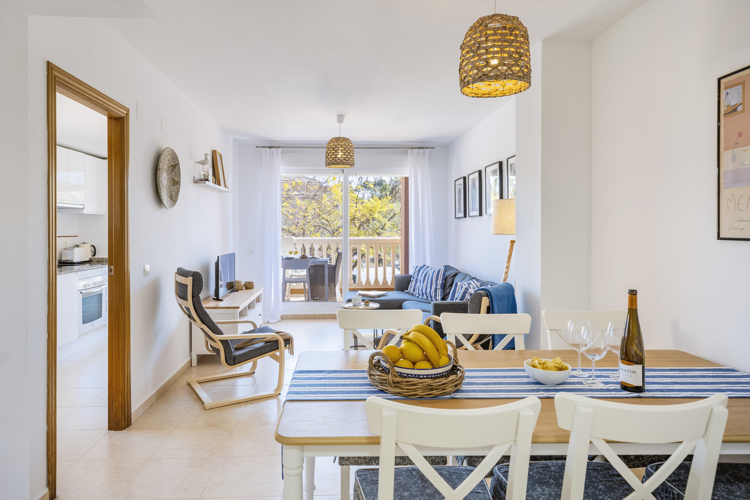 Aan de binnenkant is de open plattegrond licht en gezellig, met een moderne en elegante keuken en een ontbijttoonbank met uitzicht op de eetkamer en de woonkamer, plus een smart-tv. De hoofdslaapkamer beschikt over een kingsize bed, ingebouwde kasten en een badkamer met douche, terwijl de dubbele kamers en kamers met twee eenpersoonsbedden een ruime badkamer met douche delen. De airconditioning met koude/warme luchtstroom via kanalen overal zorgt voor een comfortabel verblijf het hele jaar door.