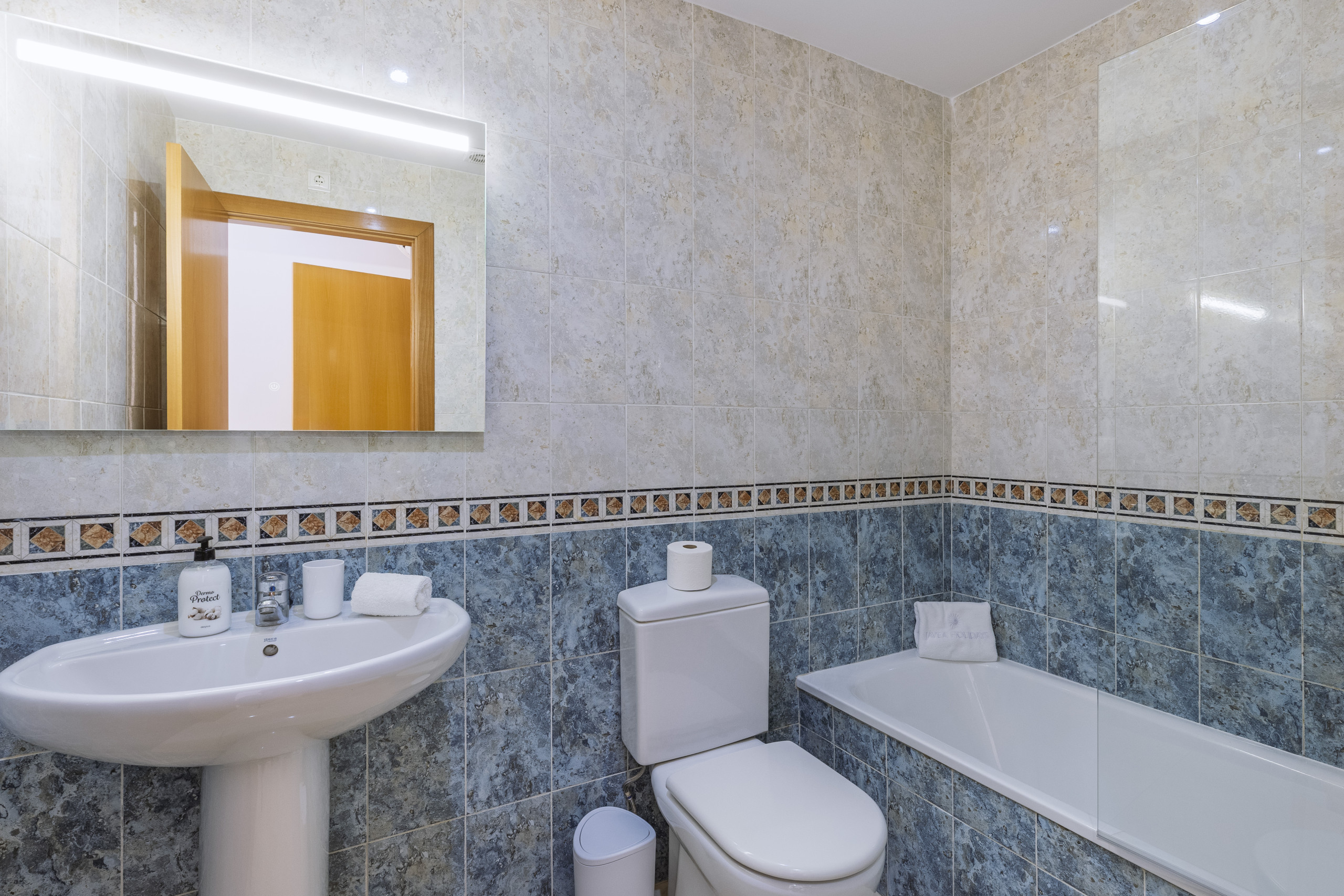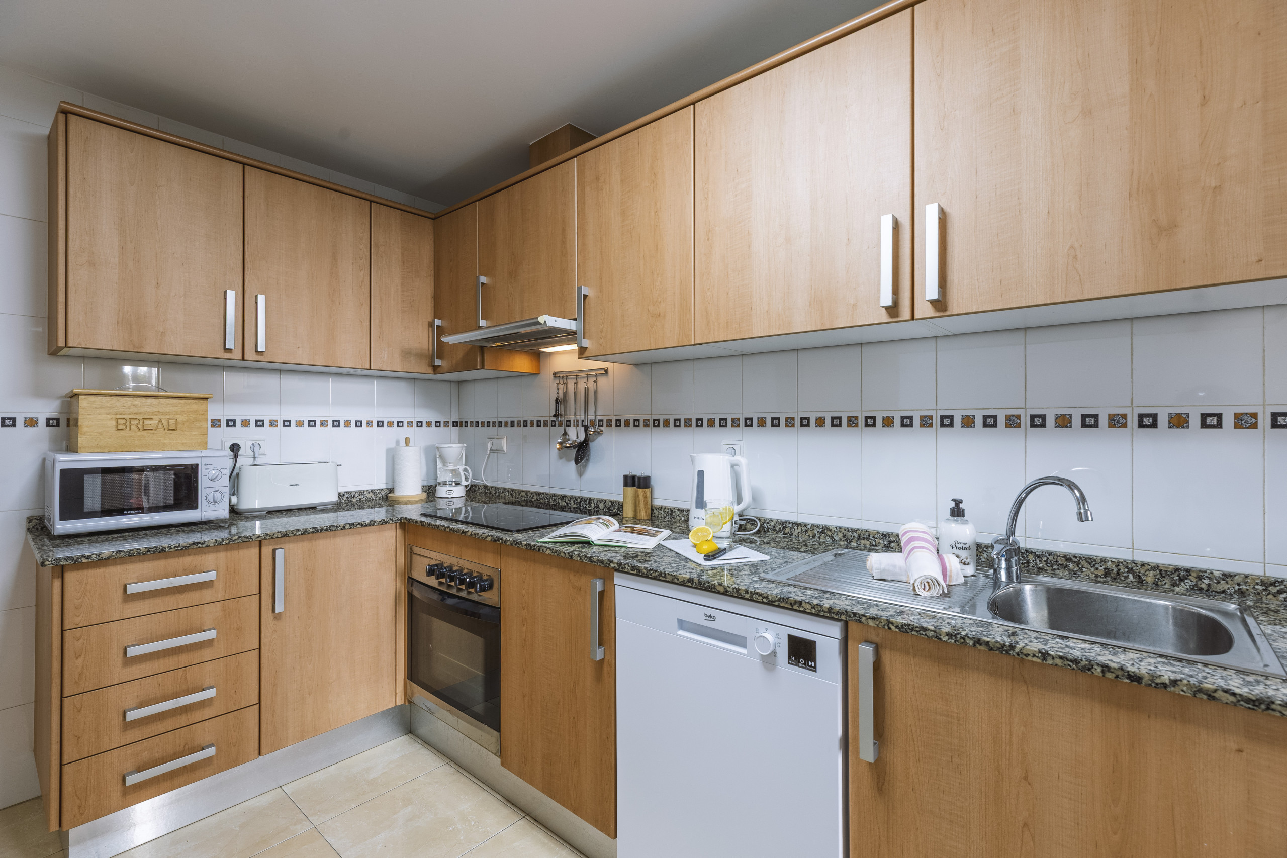 Binnen in het appartement worden gasten verwelkomd door heldere witgekalkte muren, zonnige kunstwerken en mooie decoratieve accenten in rotan en strandtinten. De ruime woon-eetkamer en keuken kijken uit op een groot overdekt balkon, met een buiteneettafel en comfortabele zitplaatsen. De elegante slaapkamers beschikken over ingebouwde garderobekasten en kwalitatief hoogwaardige bedden met gewatteerde hoofdeinden. De koude/warmte airconditioning wordt verspreid door het hele pand via een gekanaliseerd ventilatiesysteem, waardoor het een comfortabele plek is om het hele jaar door te verblijven.