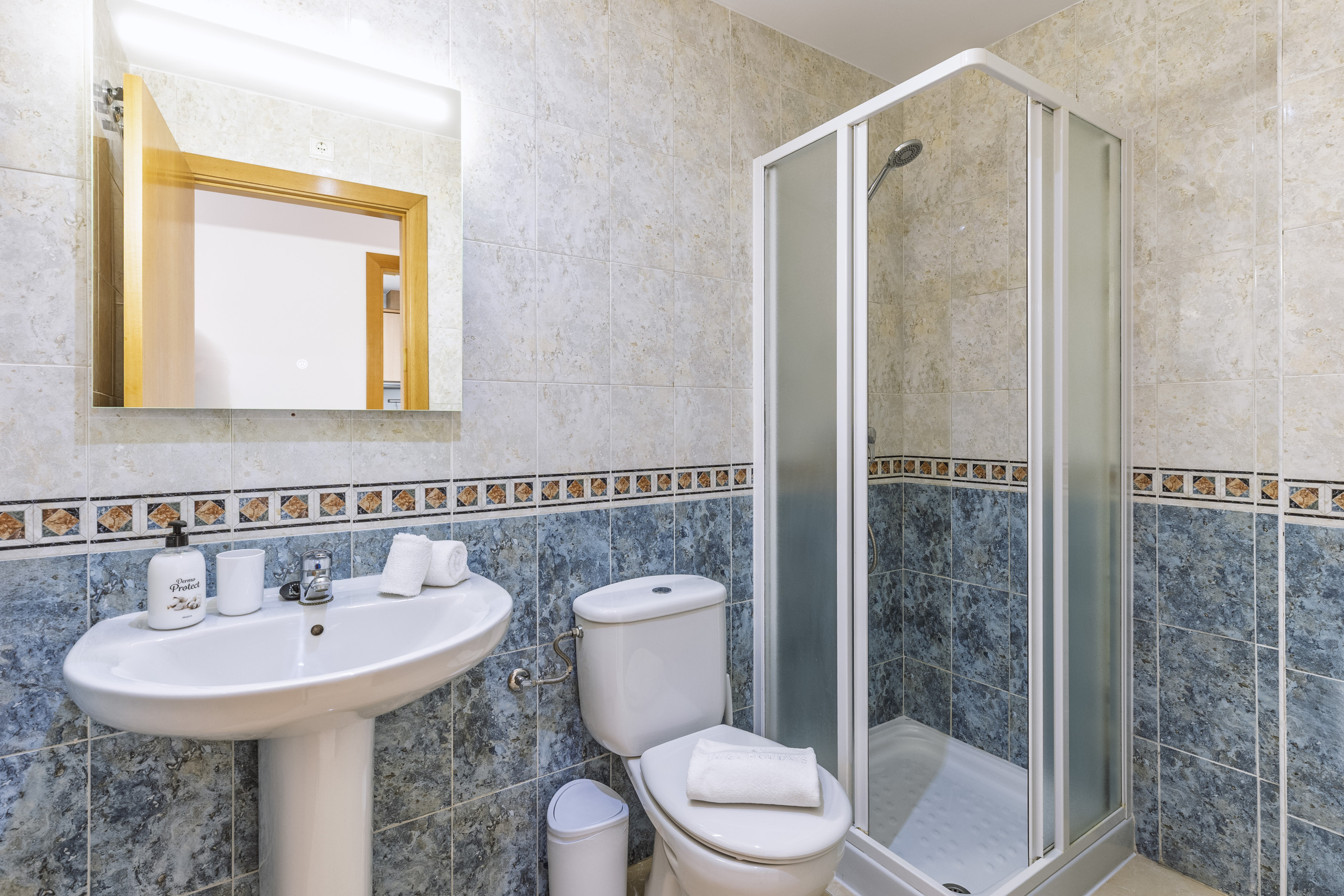 Dit lichte appartement op de begane grond is ontworpen voor gemakkelijk vakantieleven, met een lichte woonkamer en eetkamer die direct uitkomen op een overdekt terras voor een naadloze binnen-buiten doorloop. Er zijn drie goed ingerichte slaapkamers en twee badkamers, inclusief een master-suite met bad en douchekopaansluiting, plus een moderne gedeelde doucheruimte.