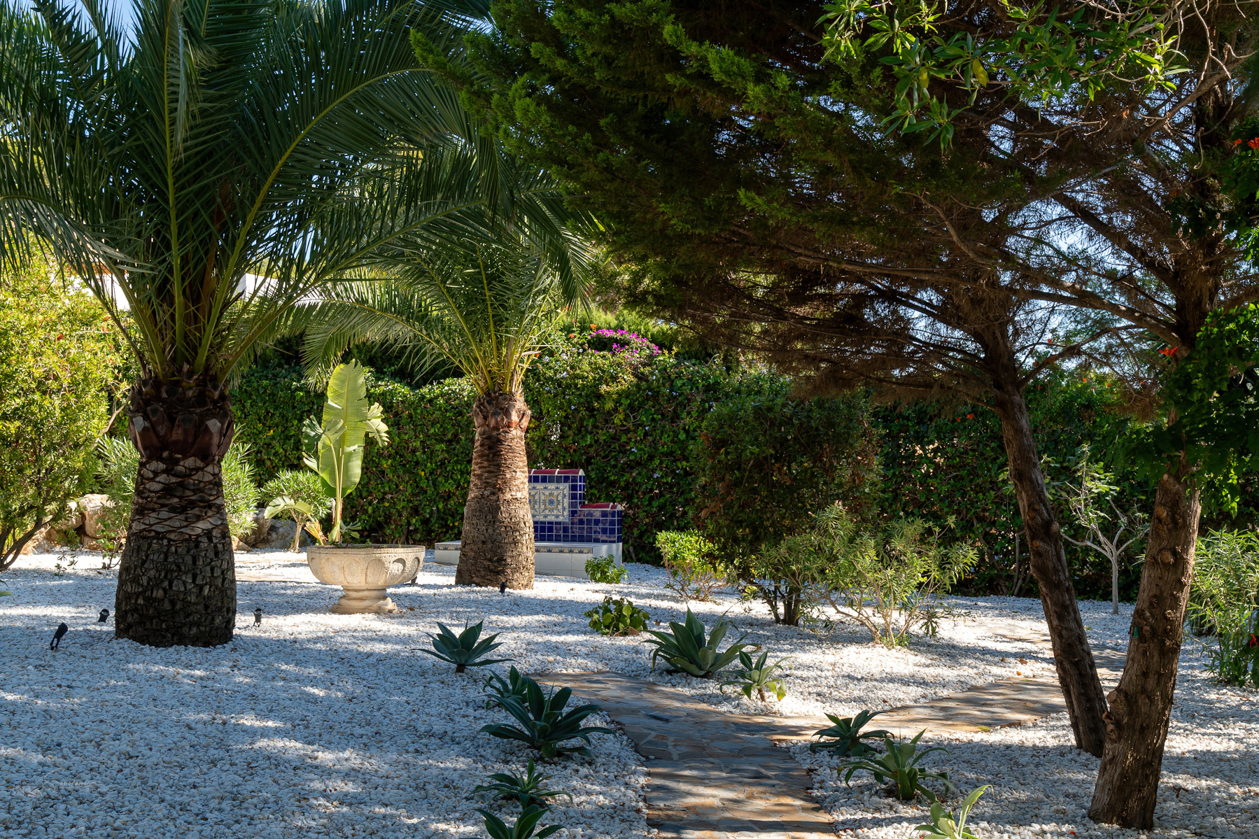 Villa Pakatoa; Een ruime, lichtrijke villa te midden van weelderige tuinen en volwassen struiken, die volledige privacy en een gevoel van afzondering bieden zodra u het terrein betreedt. De uitgestrekte binnenplaats en de karakteristieke niervormige zwembad trekken onmiddellijk uw aandacht, versterkt door een modern verwarmingssysteem voor jaarlijks gebruik. Omlijst door sierlijke Andalusische stijl bogen en levendige bougainvillea, straalt de buitenruimte charme en elegantie uit in elk detail.