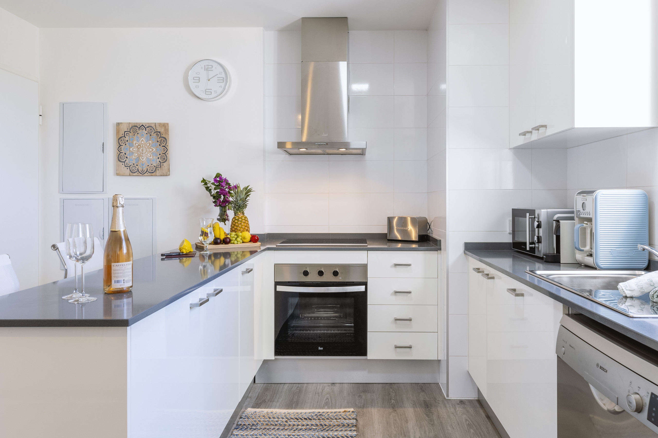 JH ama: Interiores frescos y una ubicación fabulosa; a 4 minutos a pie de un supermercado muy conocido, y a 8 minutos de la playa, la ubicación de este elegante apartamento no podría ser mejor.
