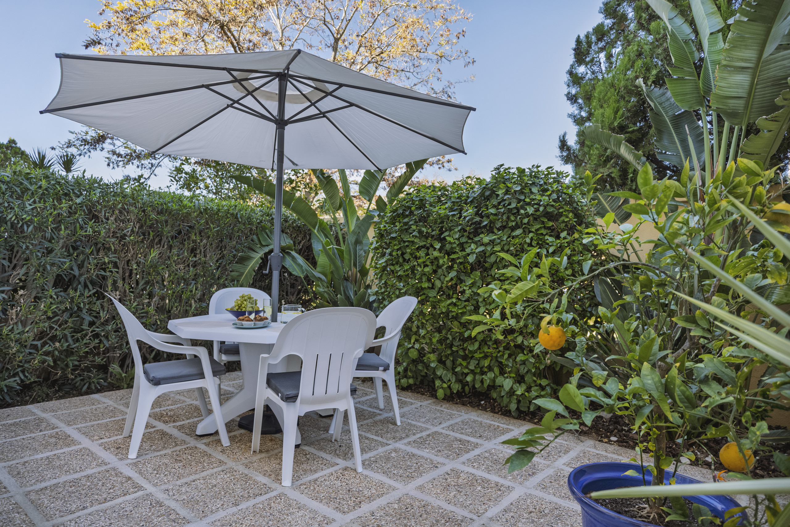 Una pequeña mesa interior con asientos para dos personas es perfecta para un bocado rápido antes de ir a la playa, pero la verdadera estrella del apartamento es la gran terraza exterior con su mesa de comedor cubierta, tumbonas y vistas magníficas del mar, palmeras y cielo. Este es un espacio maravilloso para comer, beber o simplemente relajarse por la mañana, al mediodía o por la noche.
