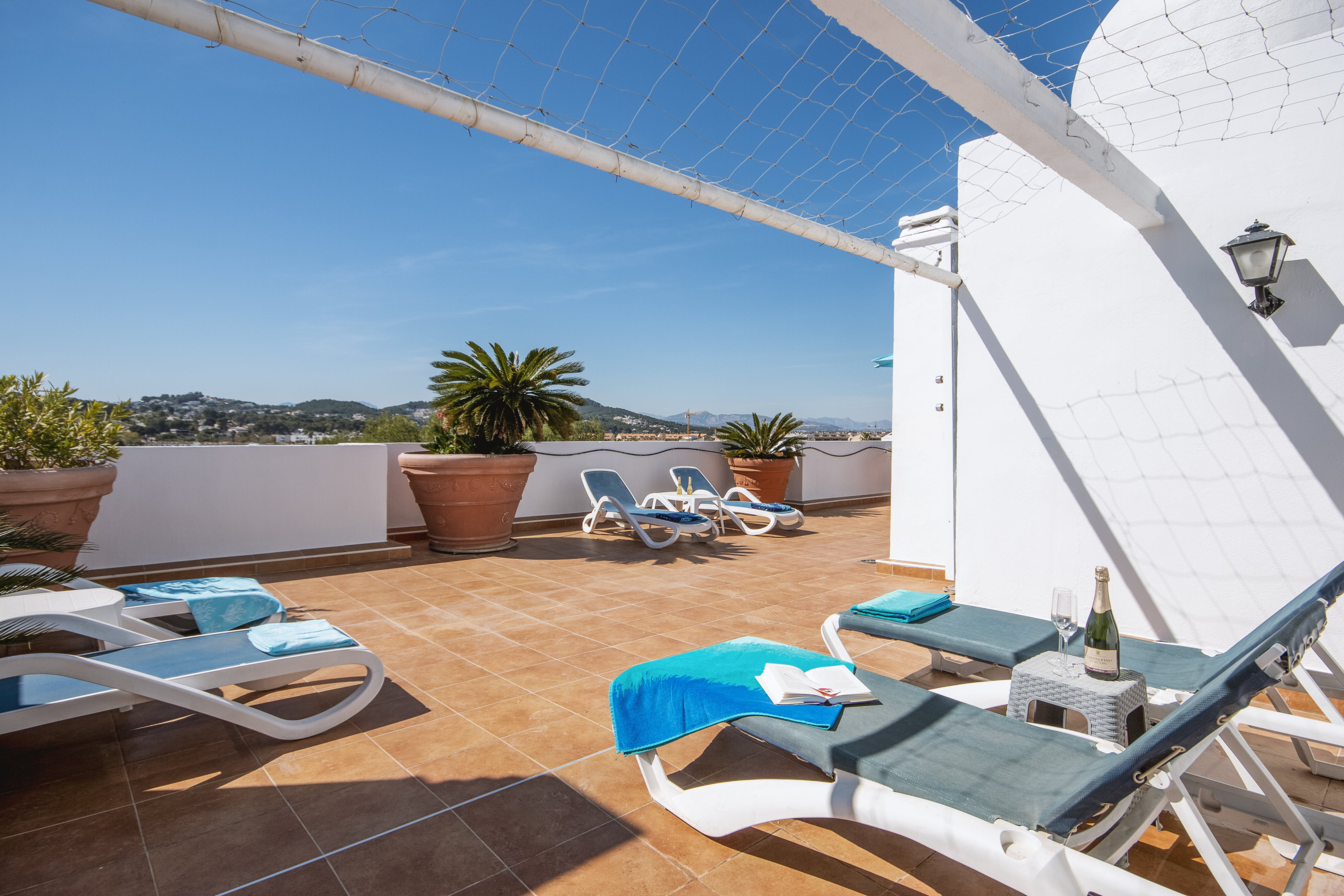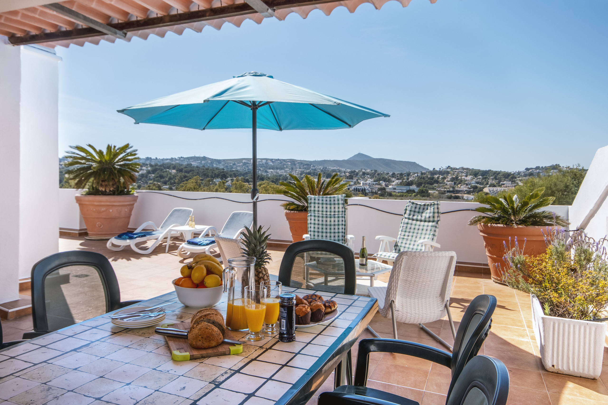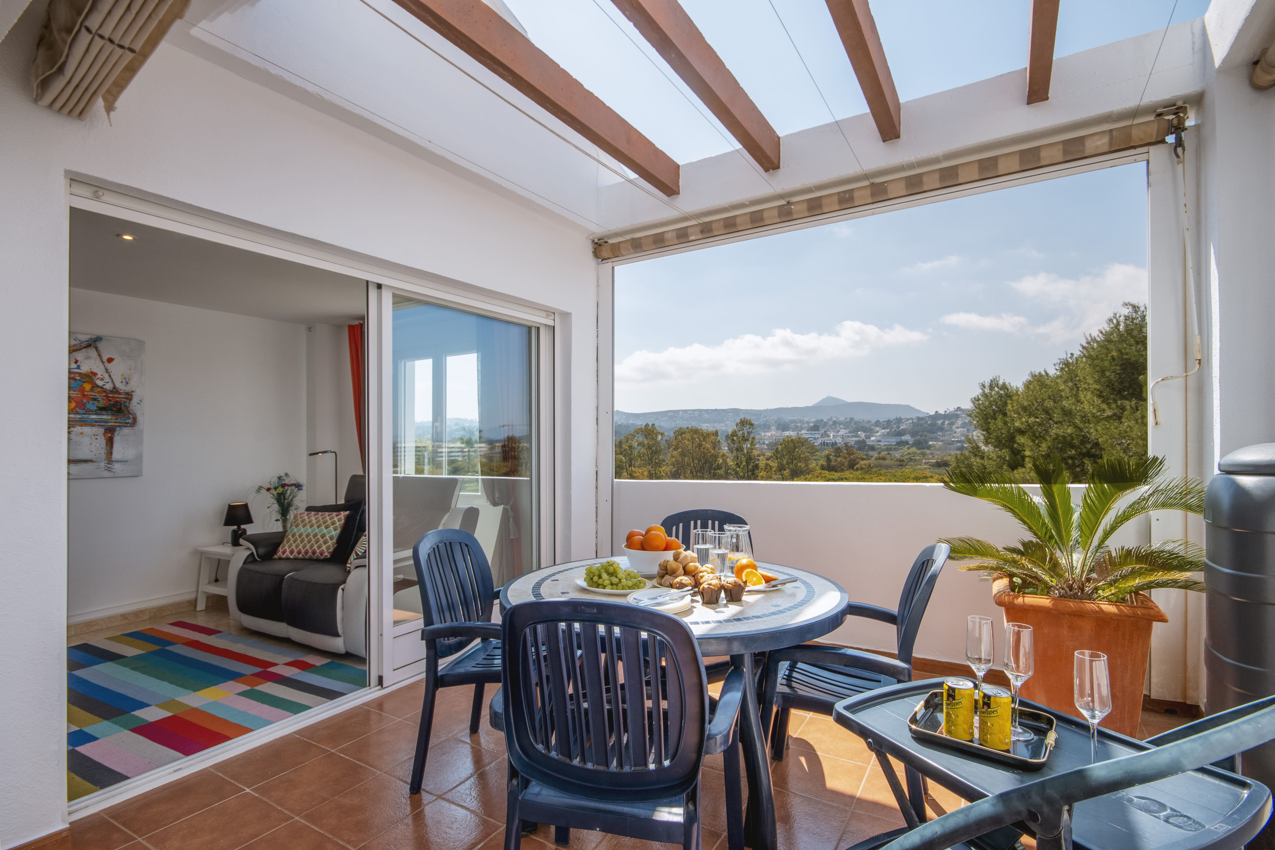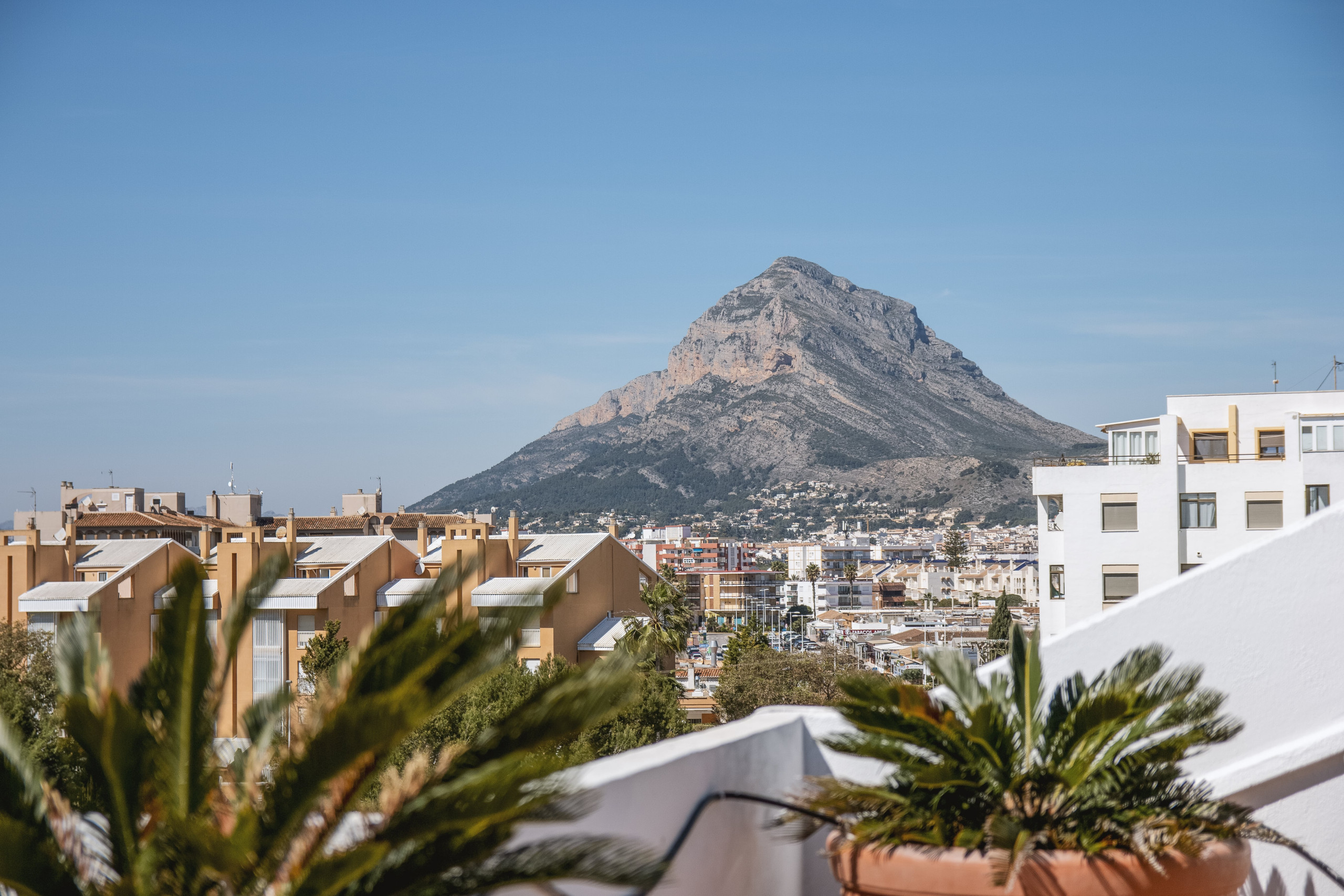Una gran terraza junto a la playa, con vistas al Montgó.