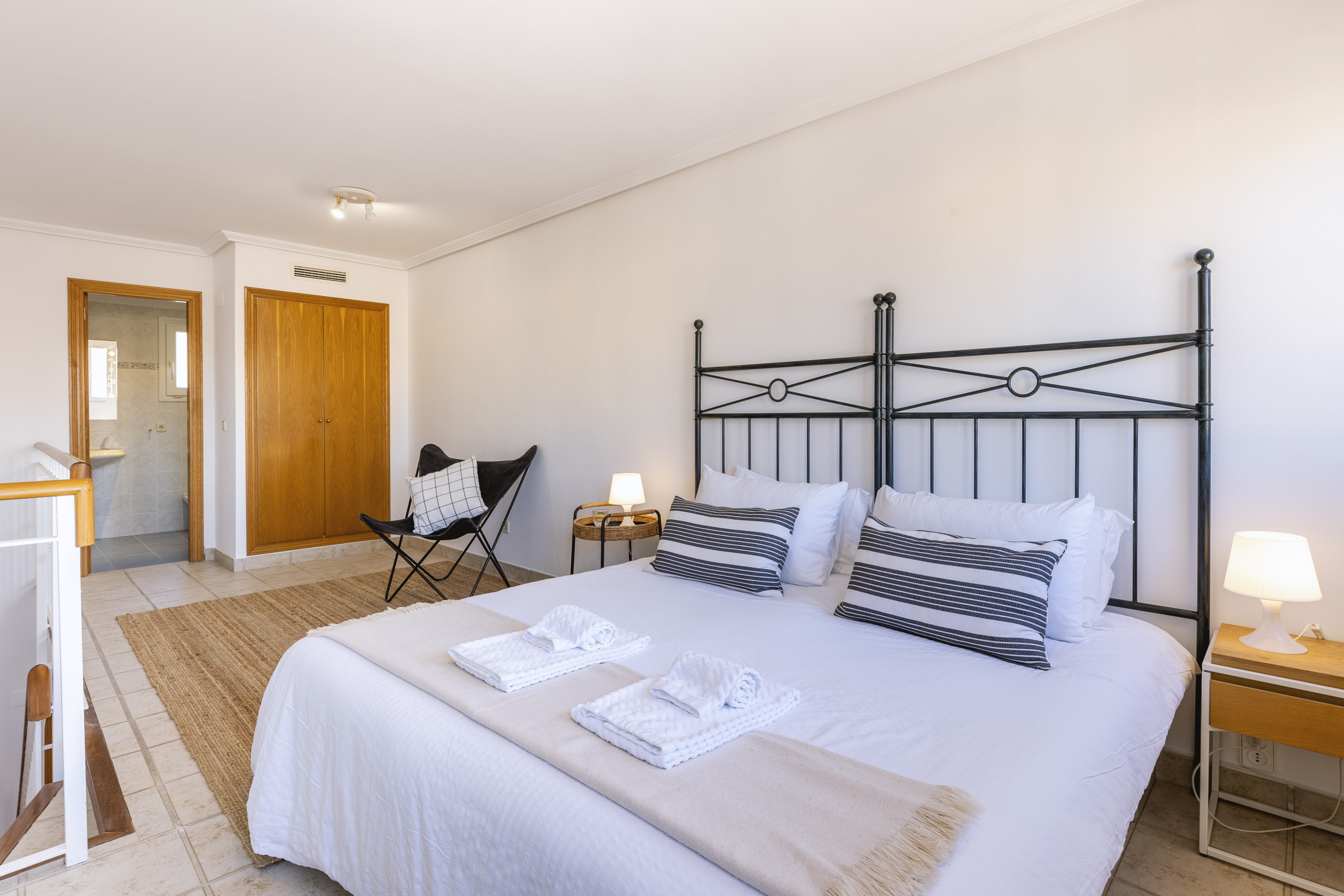 L'étage supérieur est un refuge pour se détendre avec un espace polyvalent pour lire ou regarder la télévision et deux balcons, dont l'un donne sur la zone de la piscine, parfait pour prendre un café le matin ou se détendre le soir.