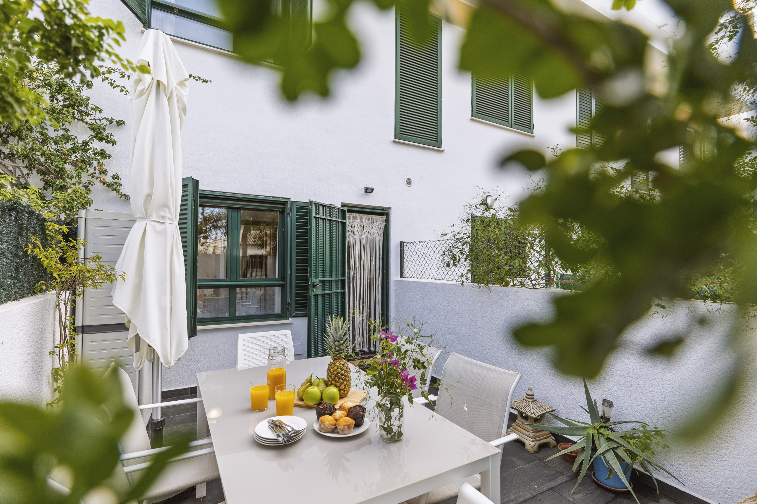 Caractéristiques principales de cette maison de ville confortable : l'hébergement spacieux avec deux espaces de vie extérieurs, la climatisation, et sa situation si proche de la mer et des nombreux équipements sur et autour de la zone de plage sablonneuse de l'Arenal.