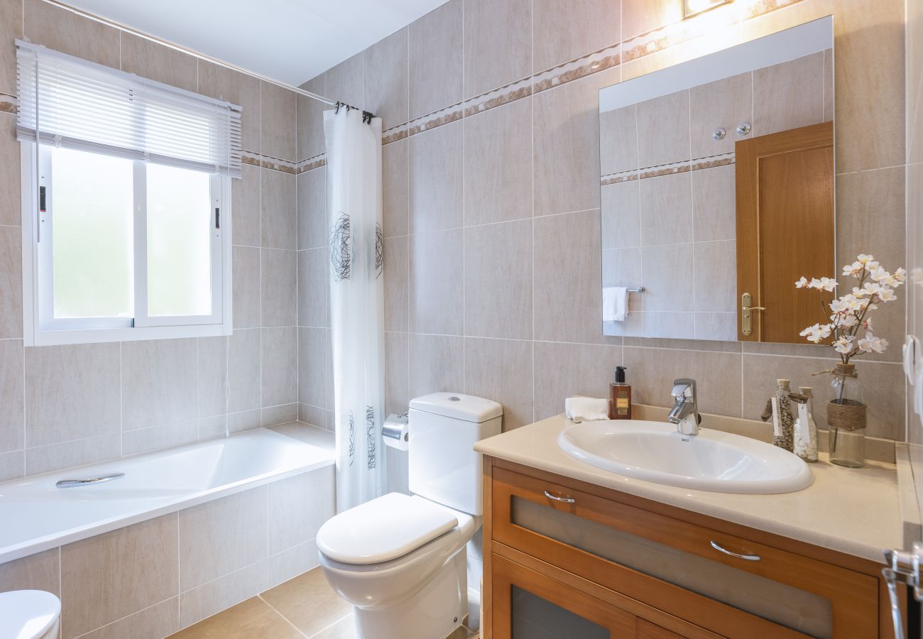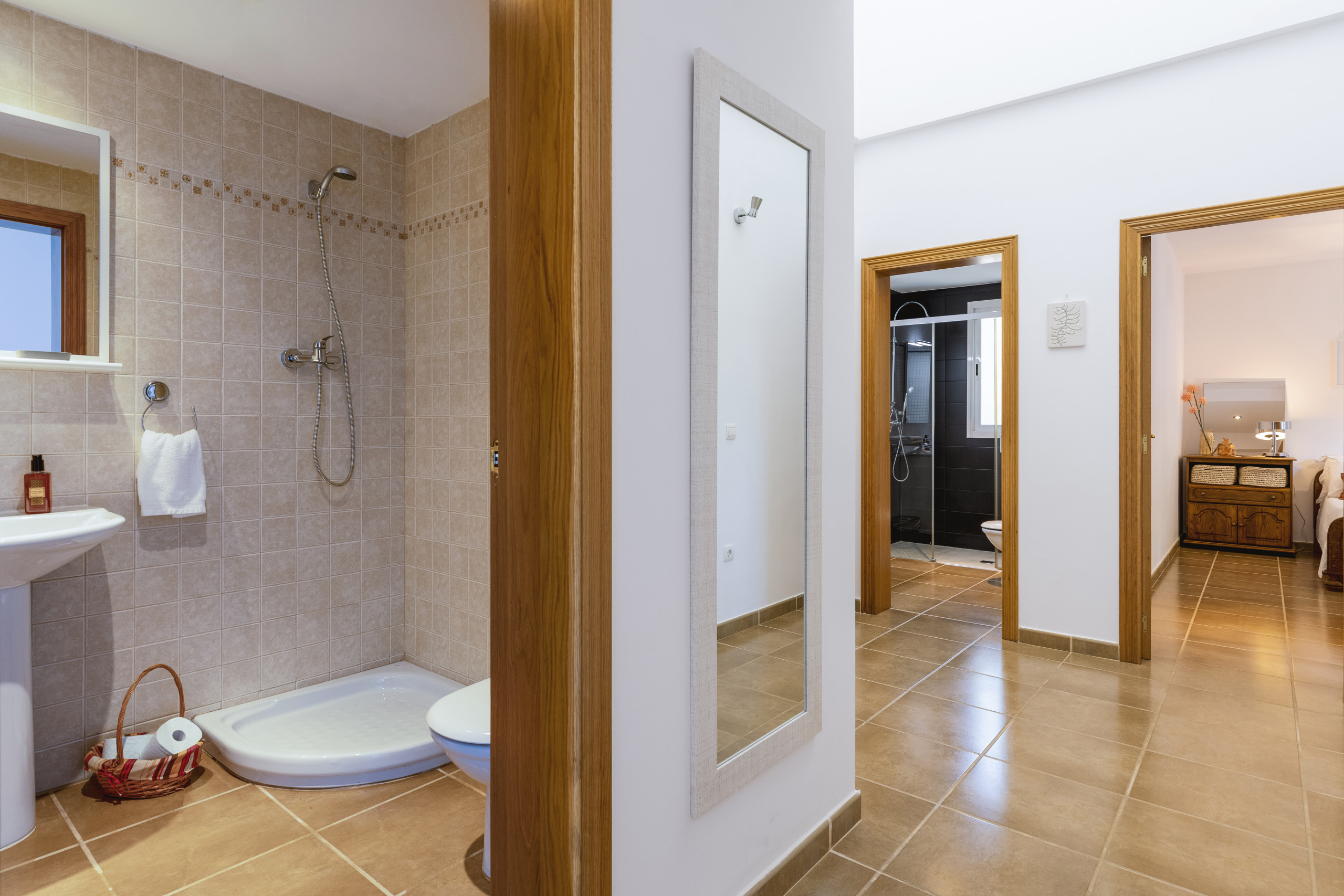 La spacieuse chambre principale bénéficie d'un climatiseur chaud/froid monté au mur et dispose de sa propre salle de bain avec douche. Les deux autres chambres sont équipées de ventilateurs de plafond contemporains et partagent une salle de bain familiale avec une douche moderne à l'italienne.