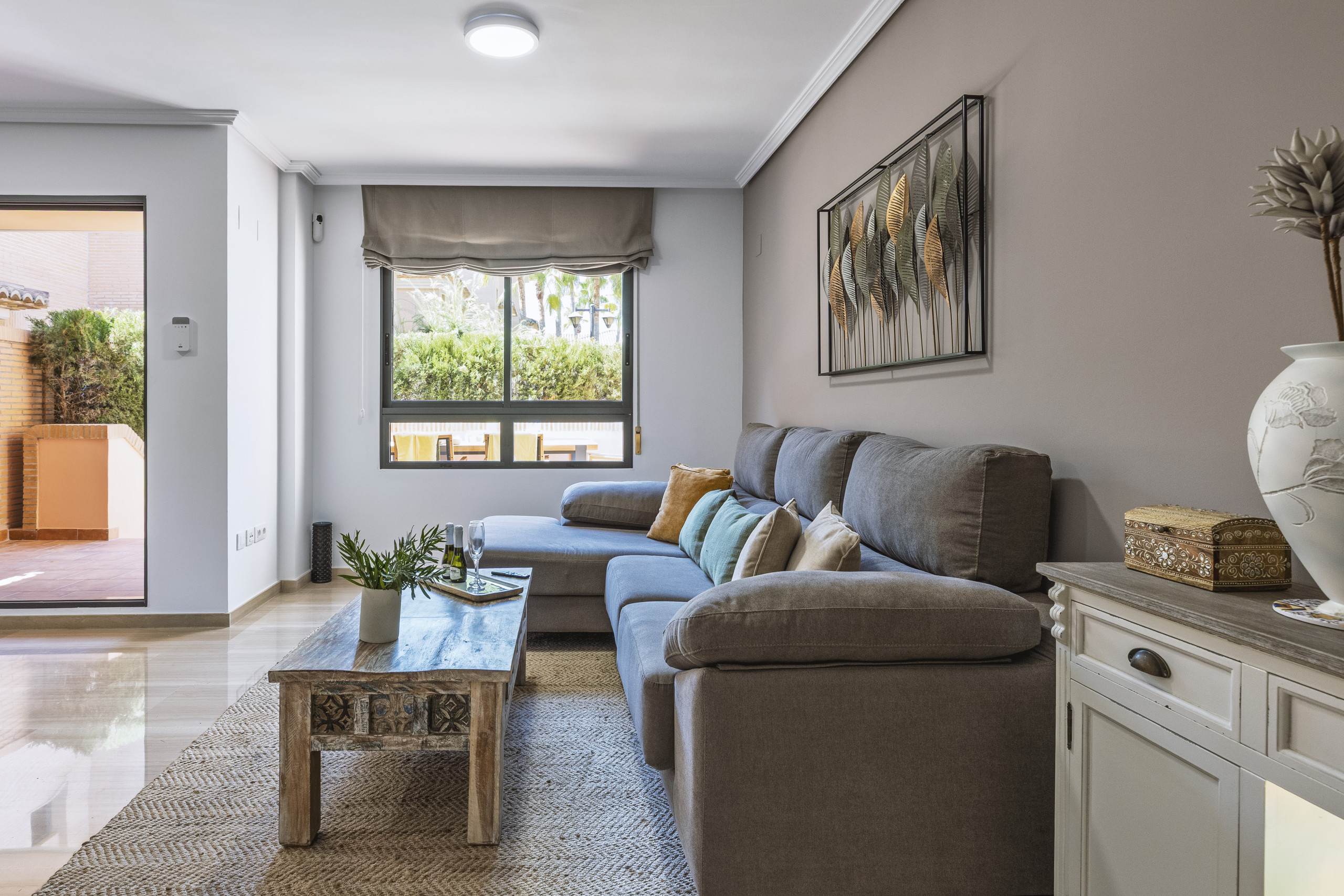Golden Beach is a lovely and bright two-bedroom apartment located just a few hundred metres from the popular Arenal beach in Jávea. With its south-facing orientation, the spacious balcony receives the best of the sun throughout the day, while offering guests the option to take refuge inside, in the cool air-conditioned rooms.