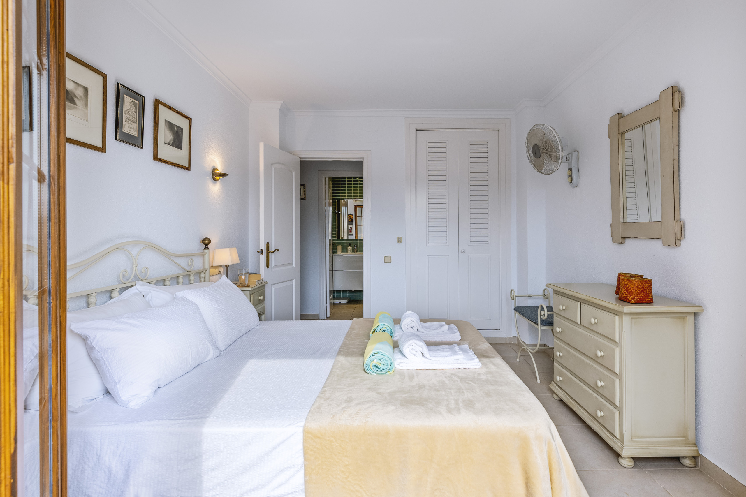 Equipped with cold/hot air conditioning through ducts, the shared spaces and bedrooms of the apartment are a cool refuge from the summer sun's heat and a cosy paradise in winter, when nights are cooler. The three bedrooms have quality mattresses and built-in wardrobes, while the main bathroom and shared family bathroom offer guests spacious showers and quality accessories.