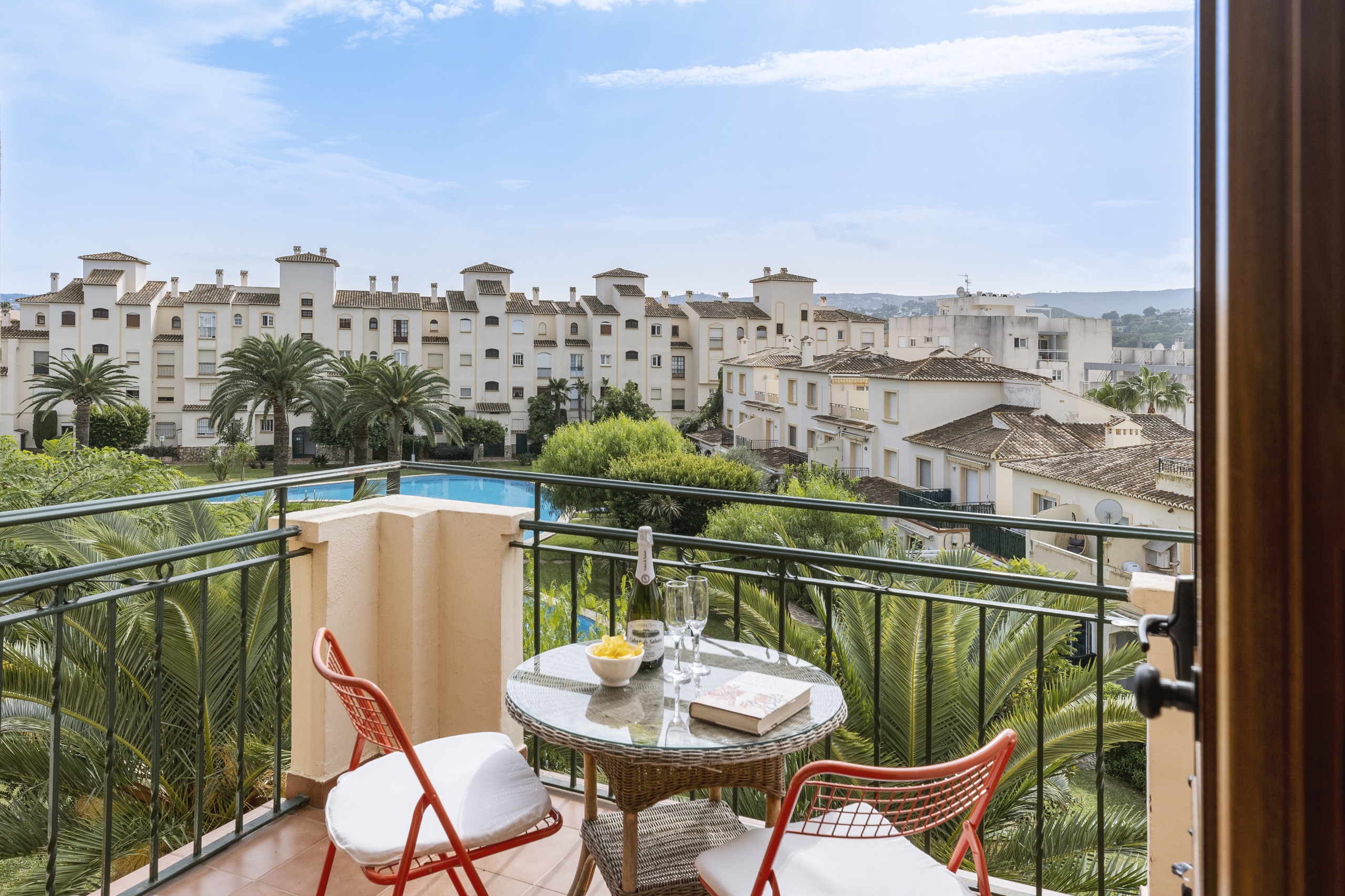 A great apartment with loads of storage, kitchen had everything we needed and plenty of glasses, plates etc. Balconies got the sun all day and pool and grounds were lovely and well kept. While we were there, the complex was very quiet even though it was half term. Would definitely return.
