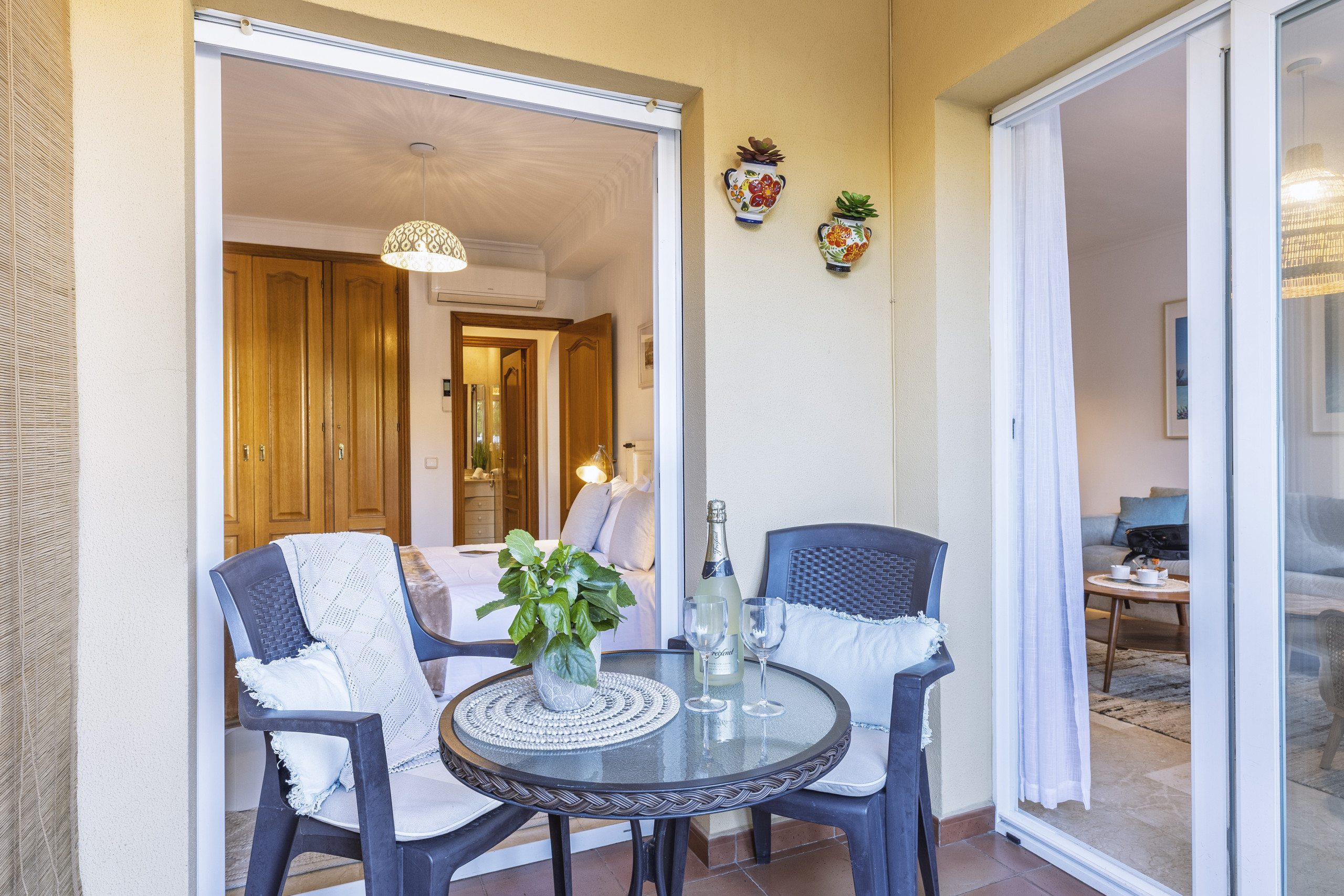 The interior, fully equipped and beautifully decorated, has everything necessary for a perfect stay and much more. Air conditioning and 43" smart TVs in the bedroom and living room, a Sonos Bluetooth speaker, capsule and filter coffee machines, all kitchen conveniences, and a spacious bathroom with shower and heated towel rail.