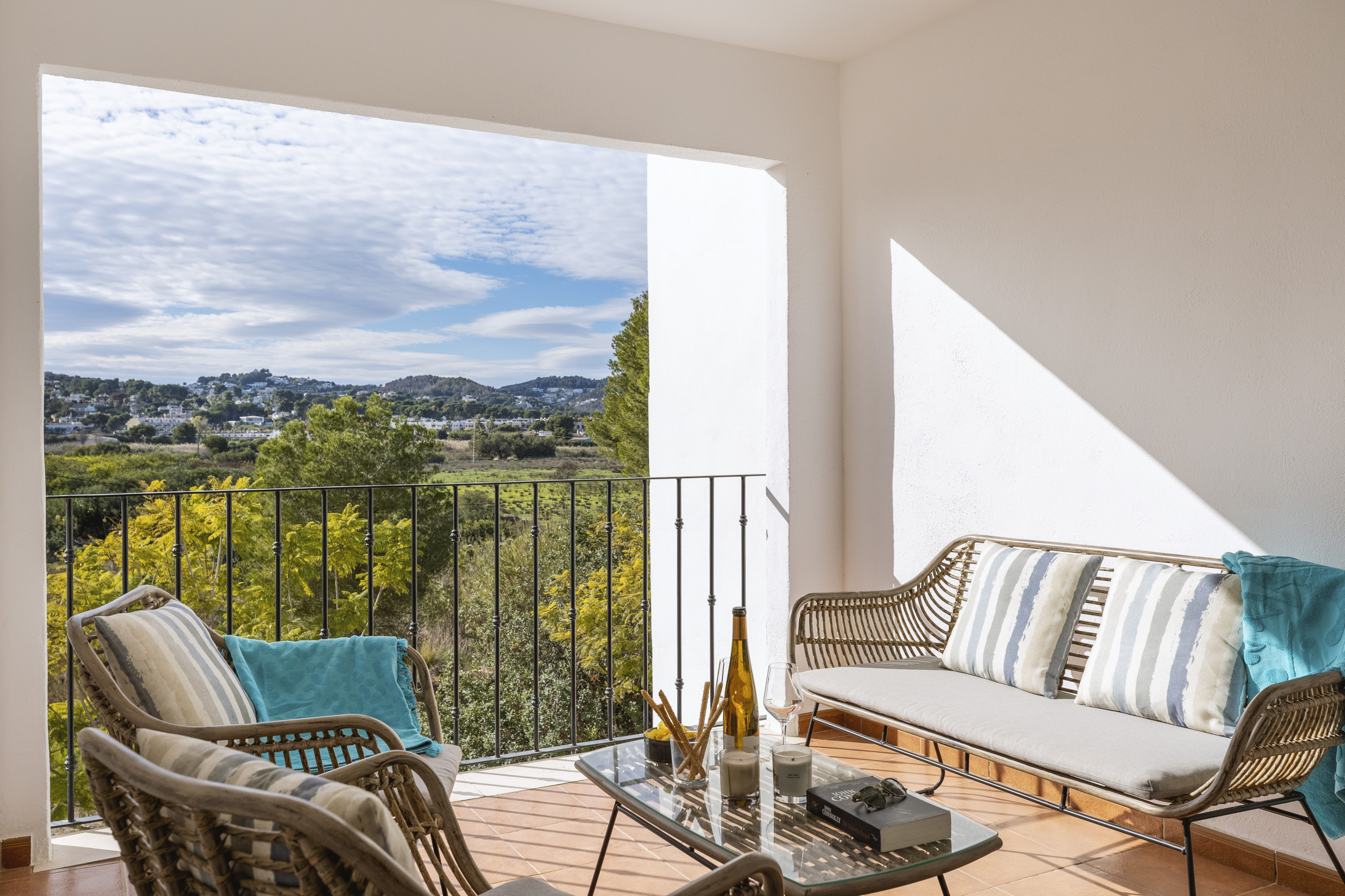 Enter a bright, spacious and open living and dining room, designed for relaxing holidays. The large Smart TV is ready for cosy movie nights, while the furnished balcony is your spot for morning coffee or evening drinks, with tranquil views across the fields towards the iconic Montgó Mountain.